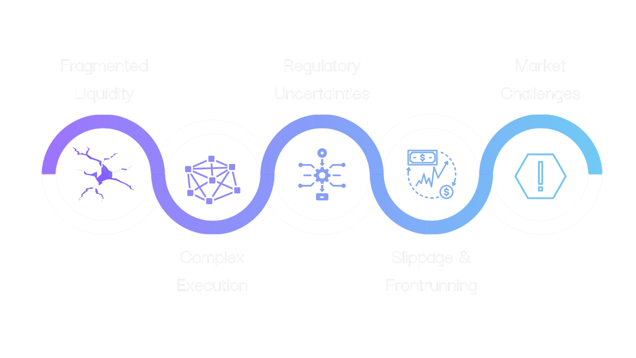 Issues like slippage, frontrunning, and the absence of best execution tools hinder trades, especially at scale.